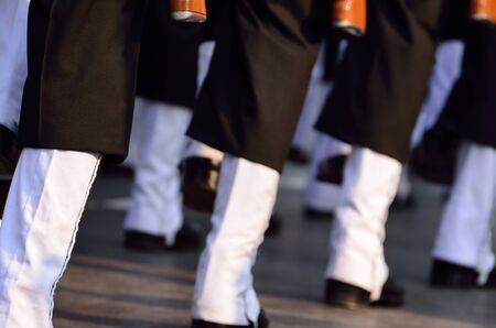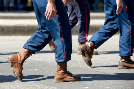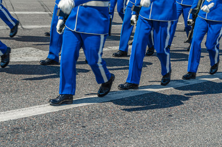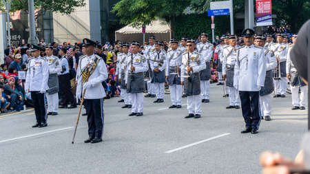 Putrajaya, Malaysia - August 31, 2019: The close up view of the parade contingent marching at the 62nd Independence day or Merdeka Day celebration of Malaysia in Putrajaya.