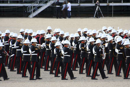 London, UK - June 15, 2006: Massed Bands at Beating Retreat 2006. Beating Retreat is a militry ceremony takes place on Horse Guard Parade in White Hall, London. This ceremony is performed by military band like bands of the Foot Guards and Household Cavalr