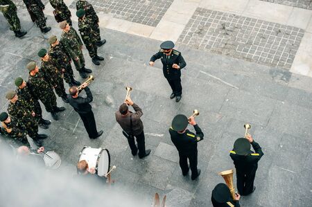Bucharest, Romania - 1 December, 2021: Romanian army soldiers prepare for the Romanian national day military parade.