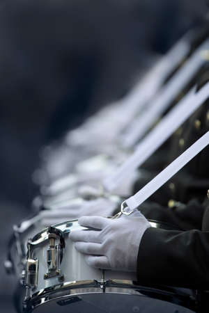 Close up and details of playing musicians, instruments in a marching, show band or music band