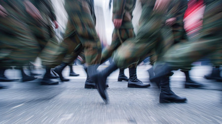 Motion Blur of Soldiers Marching: The Cadence of Discipline