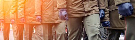 Orel, Russia - May 9, 2017: Victory Day selebration. Military men marching in row closeup