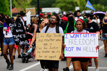 Orlando, FL, USA - JUNE 19, 2020: Women and Men Protesting in the USA. Demonstrations in the USA and protests against racism after the