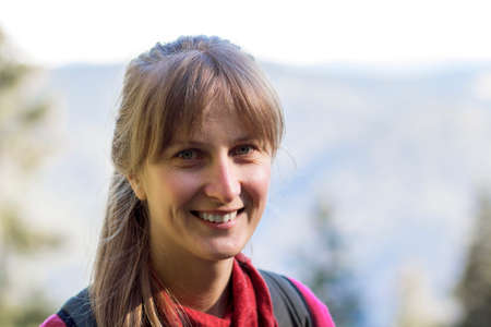 Portrait of a beautiful woman smiling at the camera in the desert
