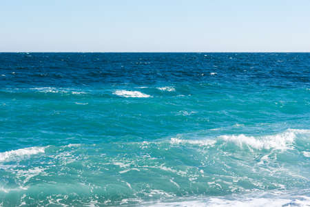 Sea water landscape. Ocean water on clear blue sky background.