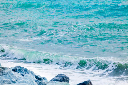 Ocean wave with spray, sea summer blue surf. environment