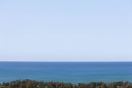 Abstract image of a cloudless sky, calm sea and tops of the trees