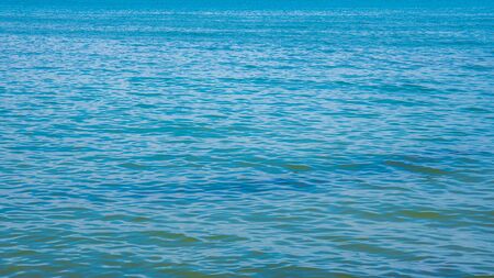 Background texture of a calm deep blue ocean with ripples on the surface of the seawater, full frame
