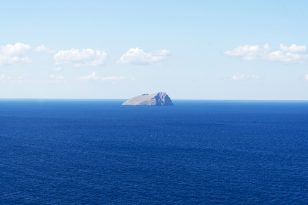 Rocky Island on the Coast of Italy near Naples. Sunny Sunrise Sky.