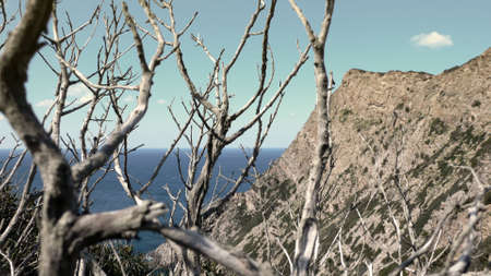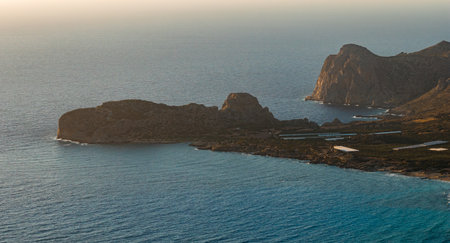 Rocky landscape of Crete and the Mediterranean Sea on the island of Crete, Greece. Location close to Balos