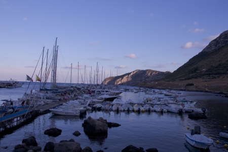 evocative image of fishing boats moored in the harbor in a small fishing village in Sicily, Italy