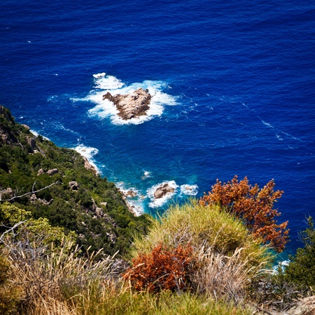 Detail of the fragmented rocky coastline of the Marettimo island, a protected maritime natural reserve in the middle of Mediterranean sea in Italy