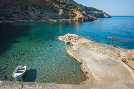 Summer landscapes from Levanzo, Sicily, Italy. Holidays in Sicily. Clear water, floating boats near the shore.