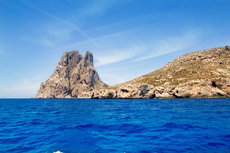 Ibiza Es Vedra island in Mediterranean blue Balearic sea