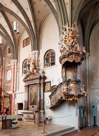 Leipzig, Germany - Oct 3, 2025 View of the church interior and nave inside the St. Thomas Church in Leipzig. High quality photo