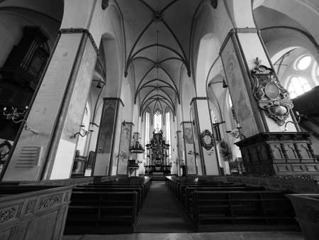 LUEBECK, GERMANY - CIRCA MAY 2017: St Jakobi (St James) church in black and white