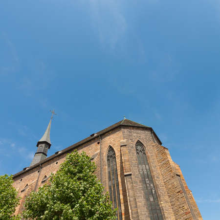 St. Remigius catholic parish church gothic style building in Bonn historical city centre, blue sky background, North Rhine-Westphalia region, Germany