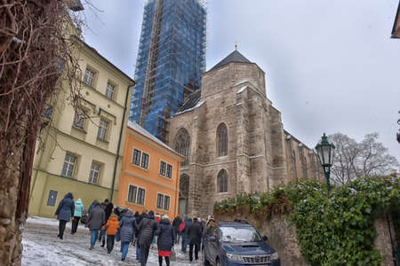 Streets of historical city of Kutna Hora in winter. The old town is protected by UNESCO and is visited by tourists during the high season.