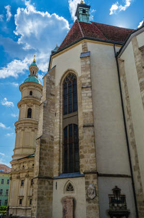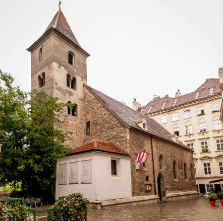 The medieval Ruprechtskirche (St. Rupert's Church) with old tree on the small yard is one of the oldest churches in Vienna, located on Ruprechtsplatz square, Austria