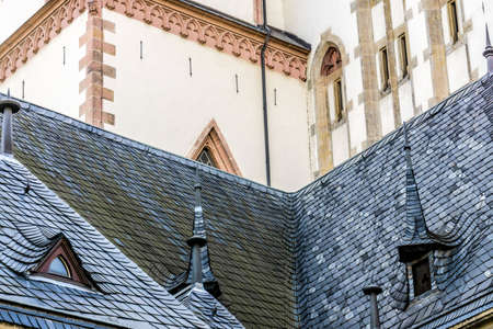 The New Town Hall in New Town of Prague in the Czech Republic, built in 1377–1398 in Gotic style was the place of defenestrations of Prague in 1419.