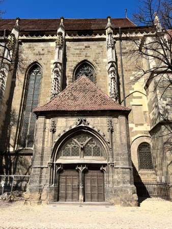 Sibiu - Romania, July 18, 2017: main courtyard of the Lutheran cathedral of Saint Mary in Romanian Sibiu