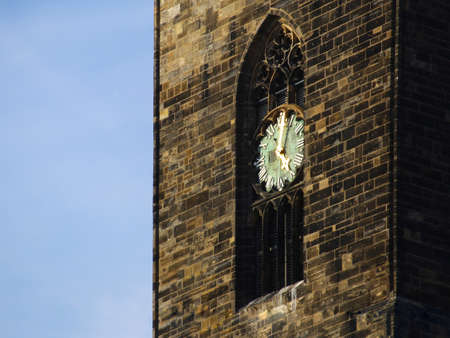 Dial of Magdeburg Cathedral (Magdeburg Cathedral) with bright sunlight reflections.