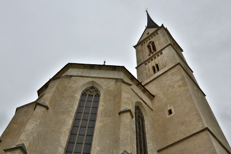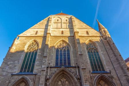 View of the Basilica of St. Francis of Assisi in Sibiu, Romania.