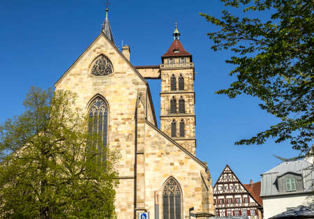 Stadtkirche St. Dionys church with tall steeples in Esslingen.