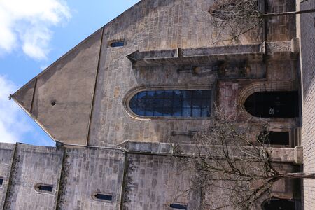 VIENNA, AUSTRIA - FEBRUARY 17, 2019: Facade of Minoritenkirche with large Gothic style windows and entrance portal, on February 17 in Vienna, Austria
