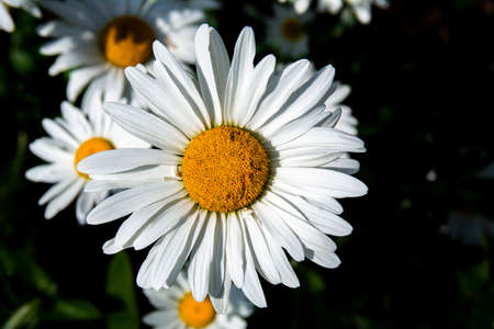 a Beautiful sunny chamomile flowers close-up