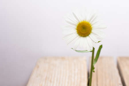 (491) showing single white daisy flower with yellow center on a light gray background. resolution use.