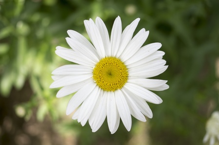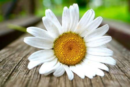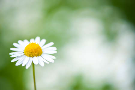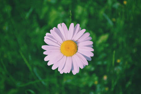 Beautiful isolated daisy in the forest with pollen on top, copyspace