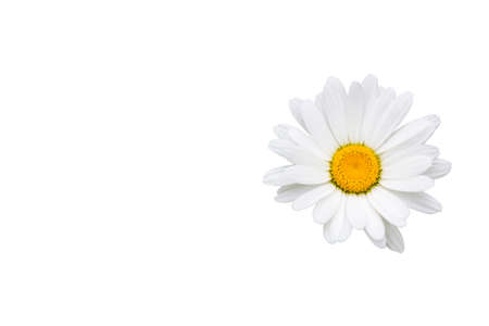 Four Fresh White Daisies with Yellow Centers Isolated on a White Background, Copy Space