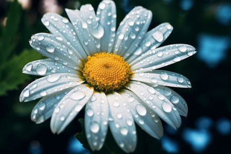 A captivating close-up of a delicate daisy with water droplets, showcasing the intricate details of the flower and the shimmering beauty of nature.