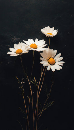Beautiful white daisies on a dark background, showcasing simplicity and elegance, perfect for spring or summer themes in floral arrangements and decor
