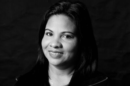 Portrait of a woman against light background. Salvador, Bahia, Brazil.
