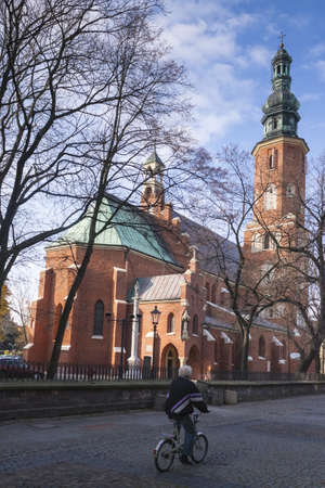 OPOLE, POLAND - February 16, 2019: Old Cathedral Basilica in Opole City Center Near the Market Square. Editorial Image