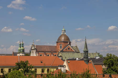 beautiful view of the old town of Krakow in Poland on a summer day from Wawel Castle