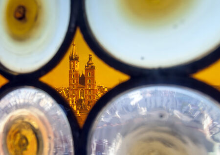 St Mary cathedral in Krakow Poland seen through stained glass