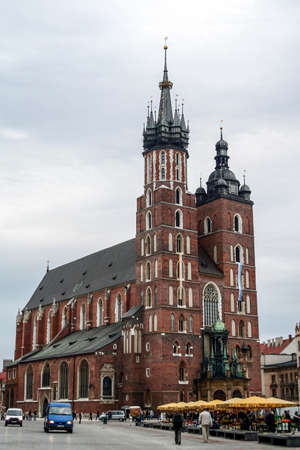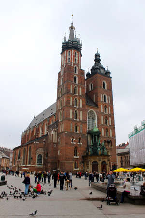 KRAKOW, POLAND - SEP 27: St. Mary's Church in historical center of Krakow, September 27, 2013 in Krakow, Poland. This year the city was visited by more 8.1 million tourists, which is the highest level.
