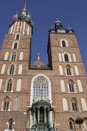 Krakow, Poland - July 05, 2016: Exterior of the Basilica of Saint Mary in Krakow