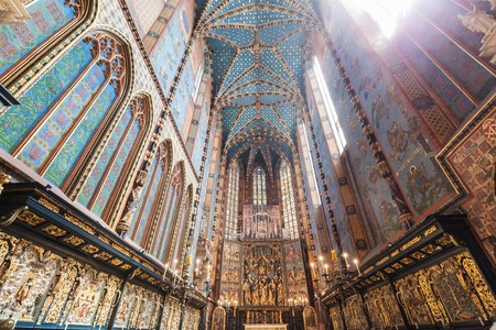 Interior of St. Marys Basilica in Krakow, Poland