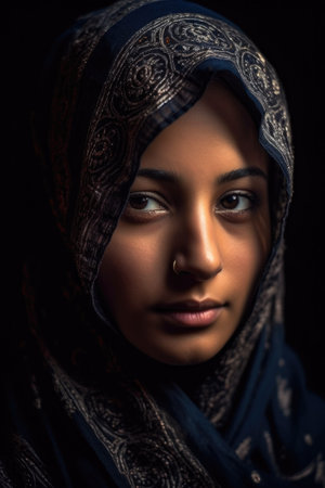 profile portrait close up of a beautiful middle eastern woman wearing a hijab