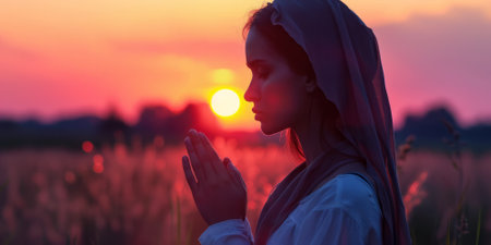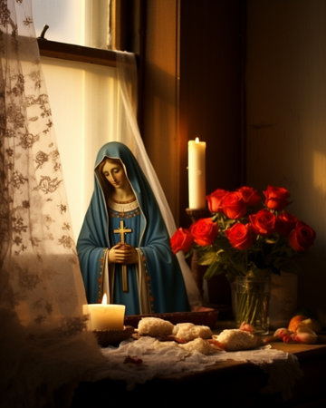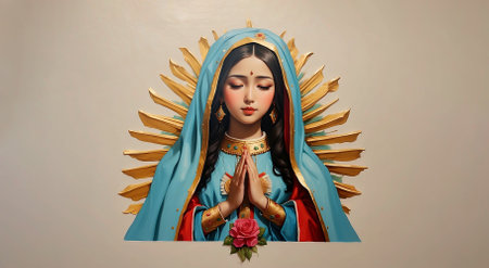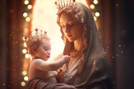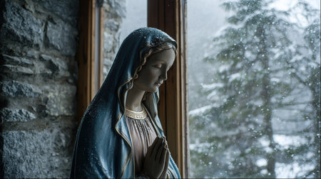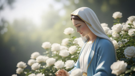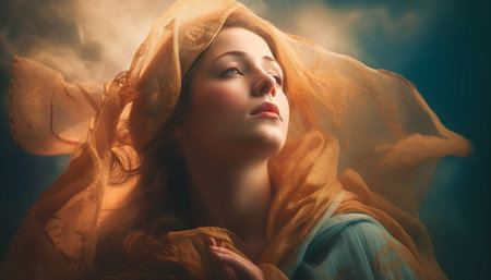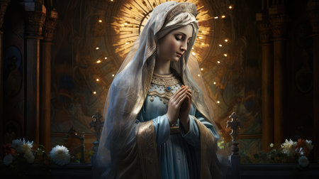 Virgin Mary: a symbol of faith and devotion, an iconic figure in Christianity representing purity, grace, and divine motherhood, revered by believers worldwide for her sacred significance