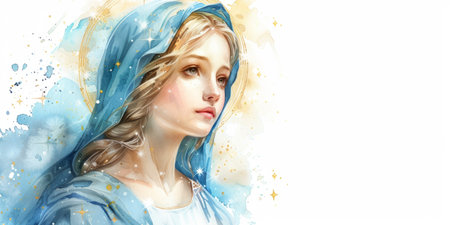 Serene Watercolor Portrait of a Woman in Blue Serene Virgin Mary Illustration.