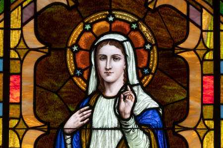 Cincinnati - Circa June 2022: Depiction of Mary, mother of Jesus Christ in stained glass at a church.