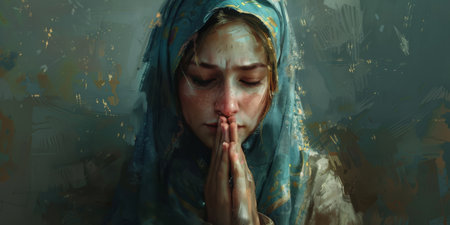 Humble Virgin Mary praying to the Lord