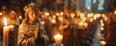 Statues in a candlelit procession capturing the essence of tradition. Concept Tradition, Candlelit Procession, Statues, Religious Ceremony, Cultural Heritage