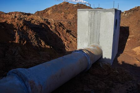 District reconstruction of the street of the district heating pipeline and the replacement of old pipes with new ones. Heating main construction for urban infrastructure, city development concept