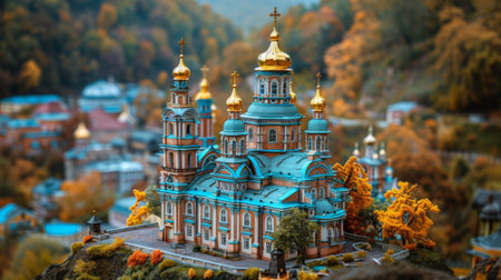 old building landmark top view suburban district surround by park outdoor environment space moody soft colors lighting in August day time